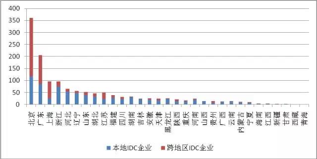 跨地区IDC持证企业数占全国IDC持证企业总数的42.8%,远高于跨地区持证企业数在全国持证企业数中的占比16.6%。